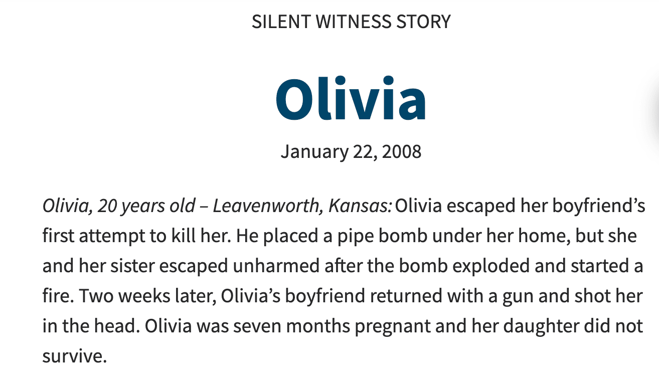 Your participation—and your willingness to donate—helps keep these stories visible, fuels life-saving prevention work, and supports a safer future for our communities. Together, we can move from reacting to preventing. Story #3 - Pearl - (Please note: Some content may be difficult to read.) If you would like to read more about the silent witness project please click here.